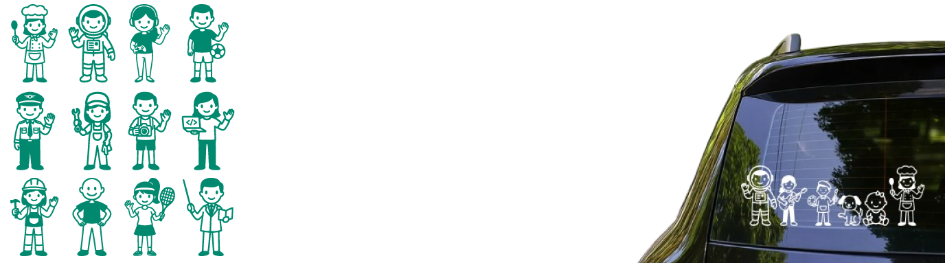 Diseña tu vinil familiar para el auto con increíbles diseños. Hecho en materiales duraderos y con acabados que destacan.
